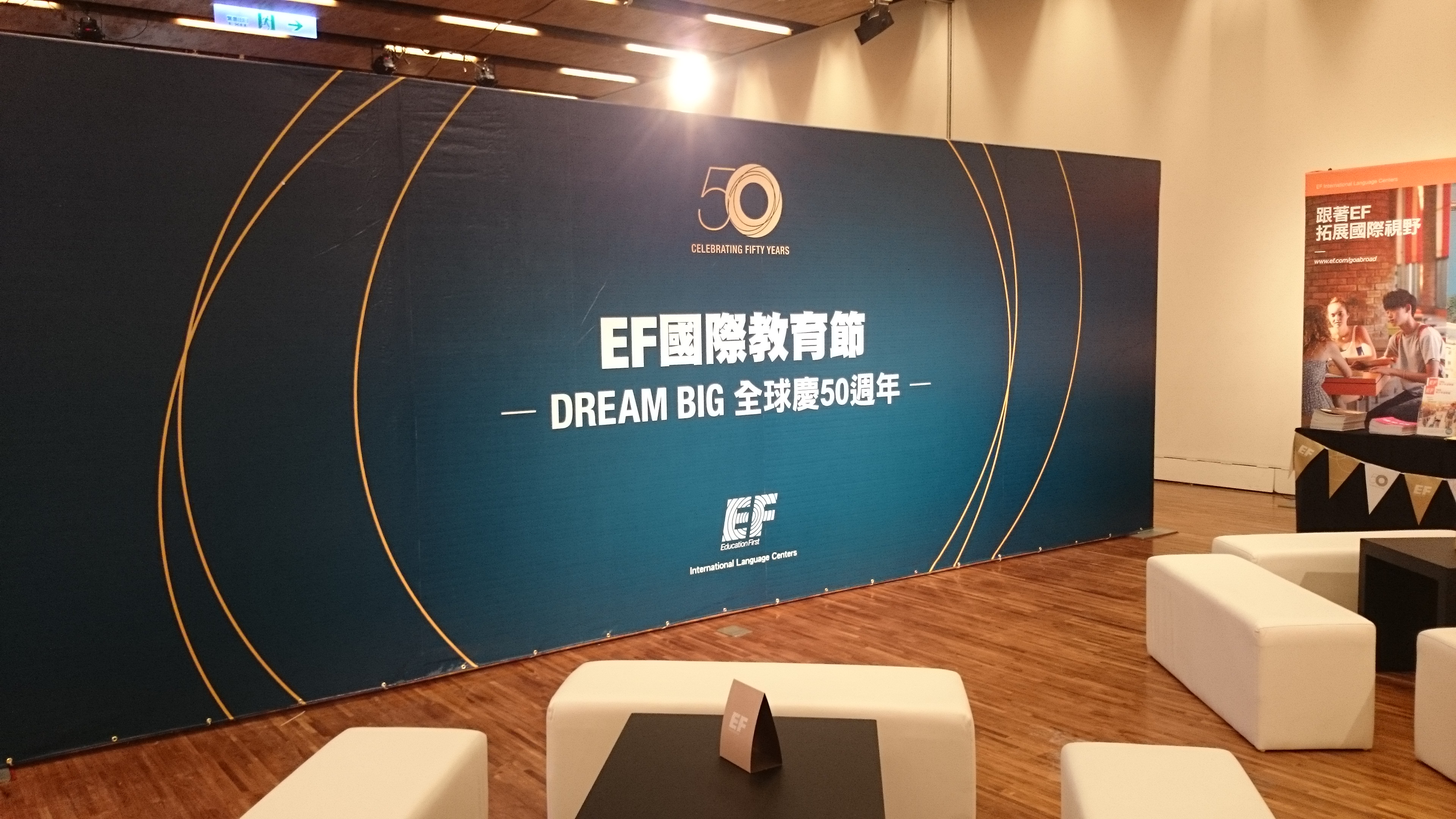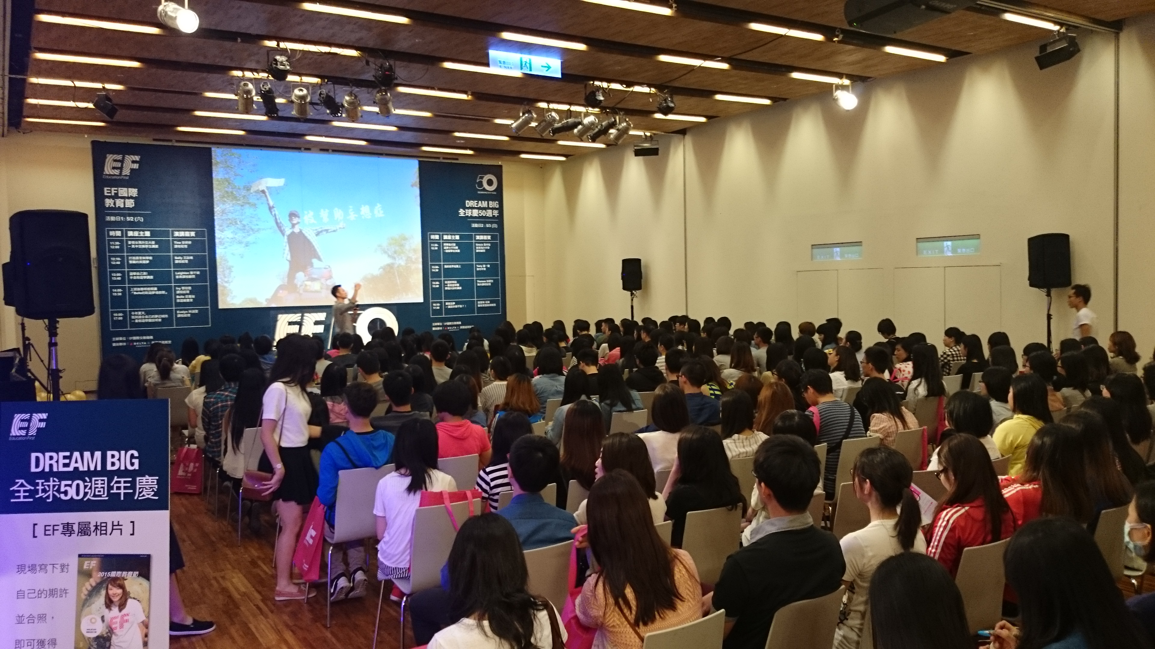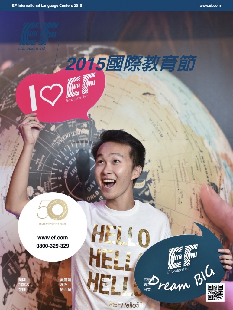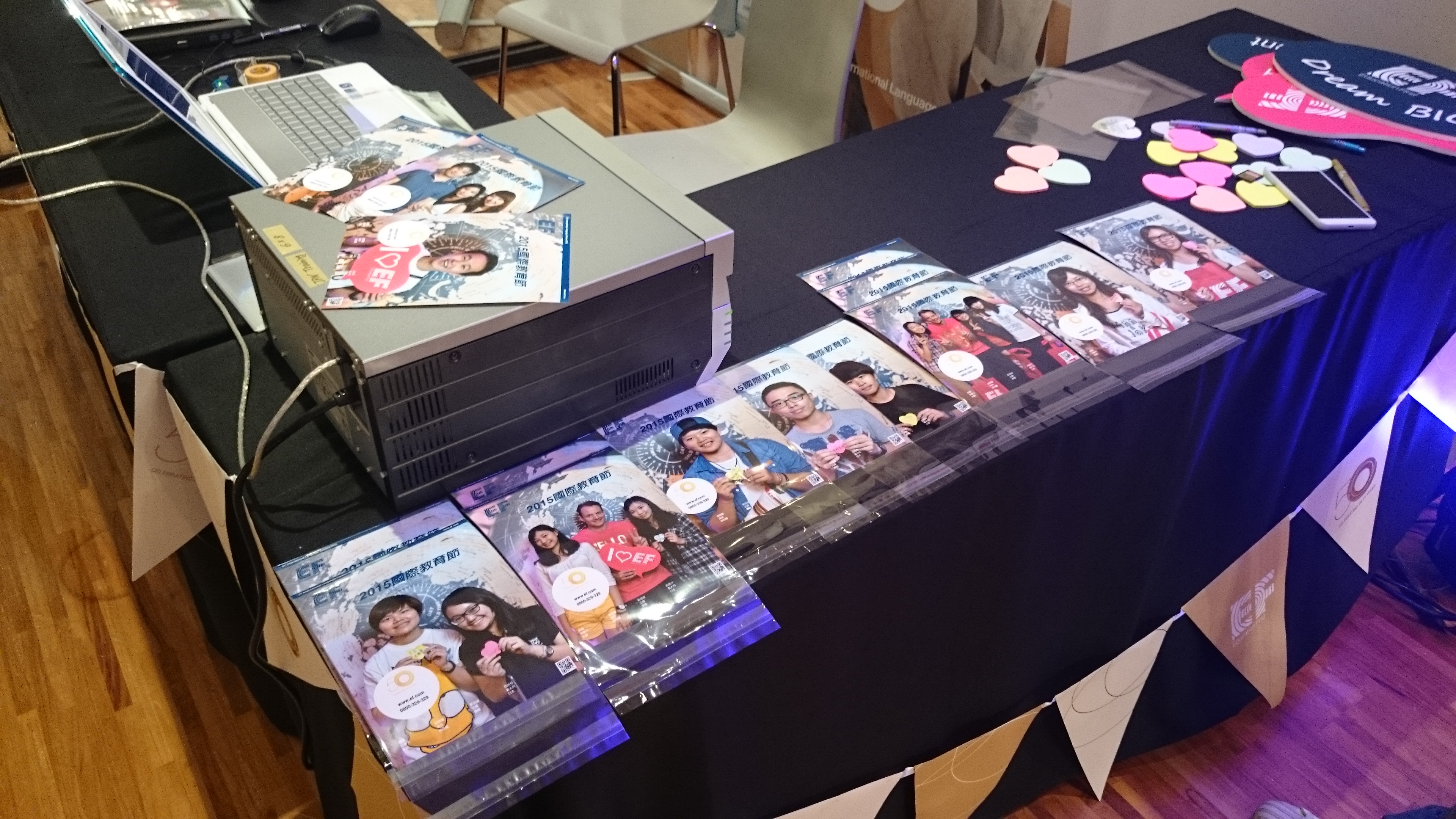 Education First (EF) 海外留學說明會,現場拍照+合成圖框+公司網頁QR Code即時合成圖檔,連接 DNP DS40 熱昇華相片印表機快速輸出,掃描 QR Code立即連結 EF 公司網站,賓主盡歡。